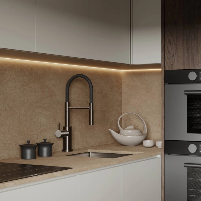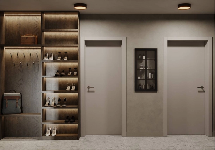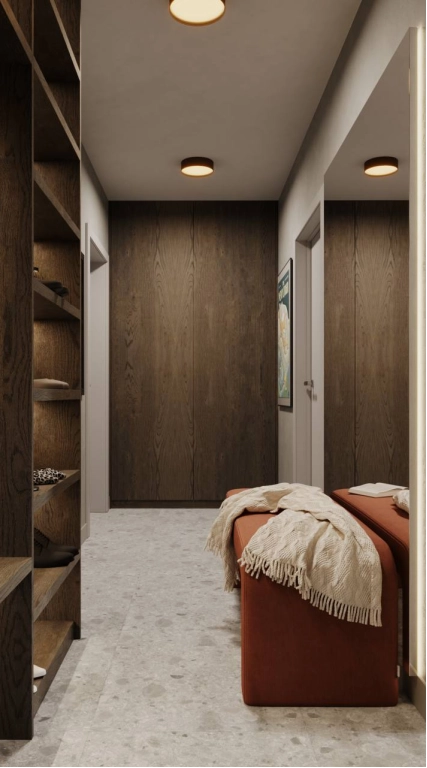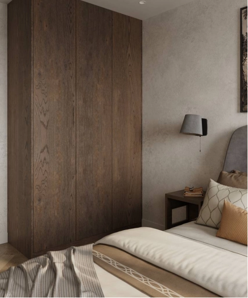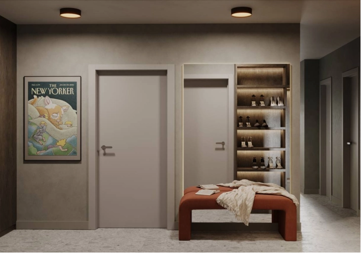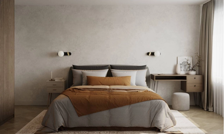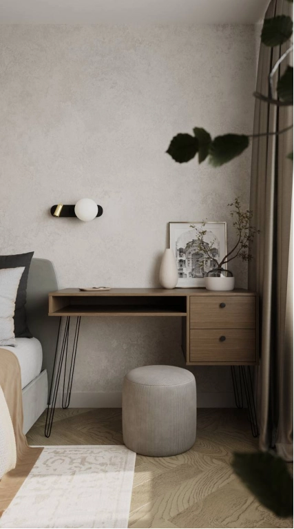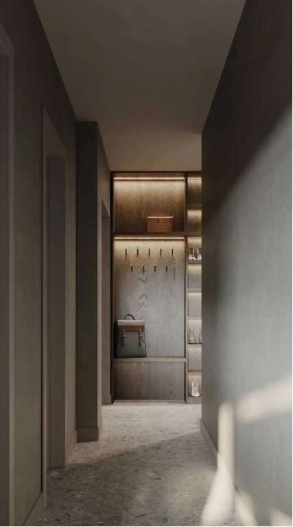 Мы создали минималистичное пространство с минимум визуального шума. Постарались учесть все пожелания заказчиков по общей стилистике и деталям. На стенах использовали практичную декоративную штукатурку, так как в доме коты и вариант с обоями мы отмели сразу. Но хотелось какой-то фактуры на стенах и выбор пал на штукатурку.