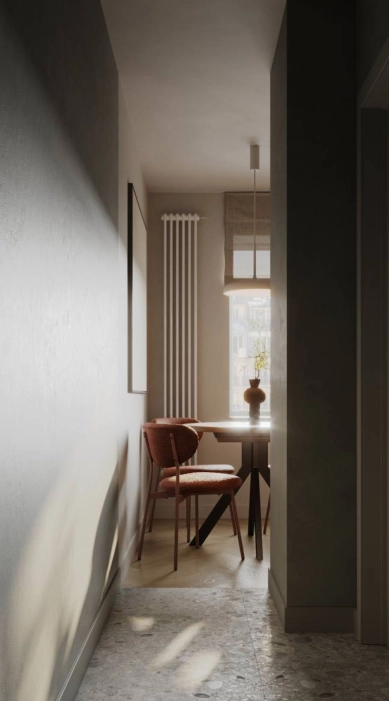 Трехкомнатная квартира расположена в историческом здании 1880 года постройки. Расположена на втором этаже. Окна кухни и одной из комнат выходят во двор. Две другие комнаты выходят на улицу. Квартира в запущенном состоянии: полы разного уровня, на потолках нет отделки, в большинстве случаев проводка внешняя. Туалетная и ванная комнаты отремонтированы заказчиками год назад и в дизайне не требуются. На первый взгляд острая нехватка систем хранения и отсутствие функции в некоторых помещениях.