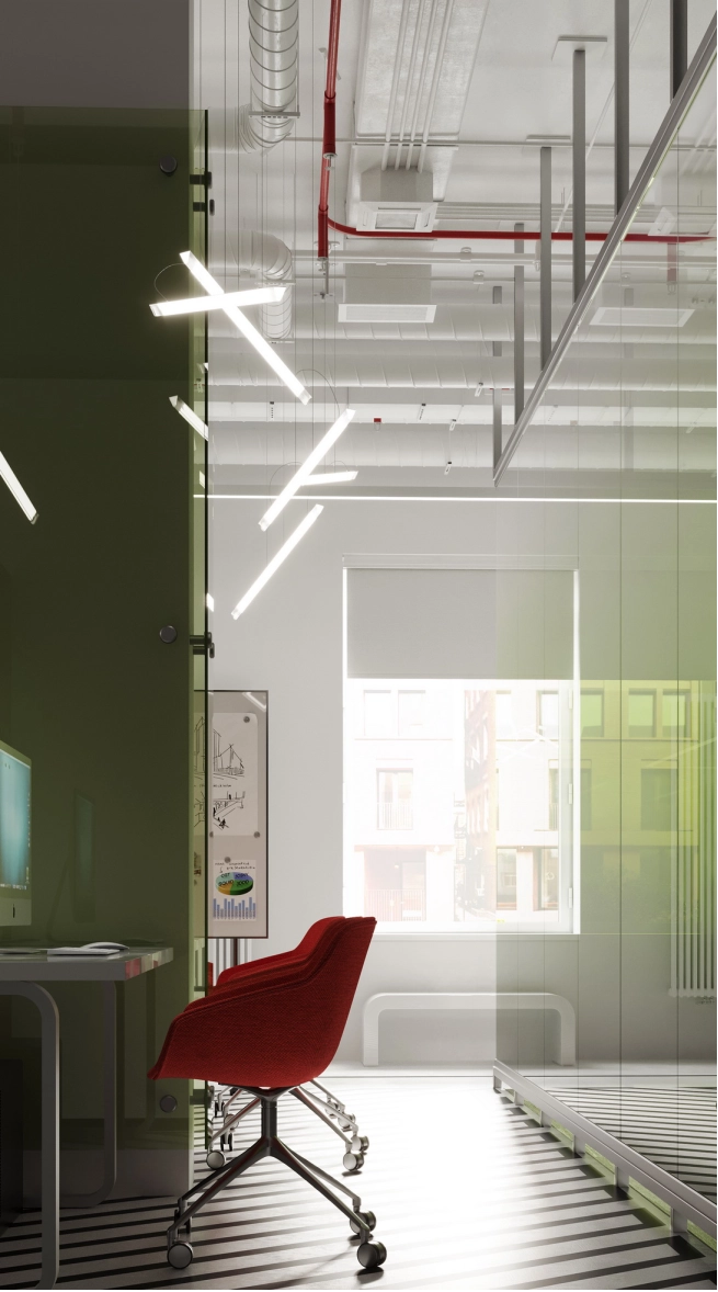 В процессе работы были подготовлены планировочные решения с расстановкой мебели, цвето-стилевые коллажи и визуализации, отражающие будущий характер офиса - функционального, современного и адаптированного под задачи компании.