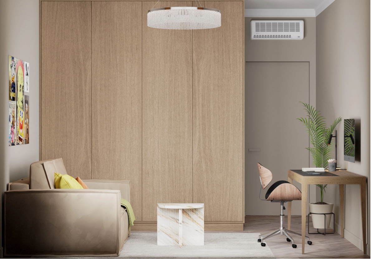 Кабинет/гостевая комната спроектированы с возможностью трансформации в детскую.